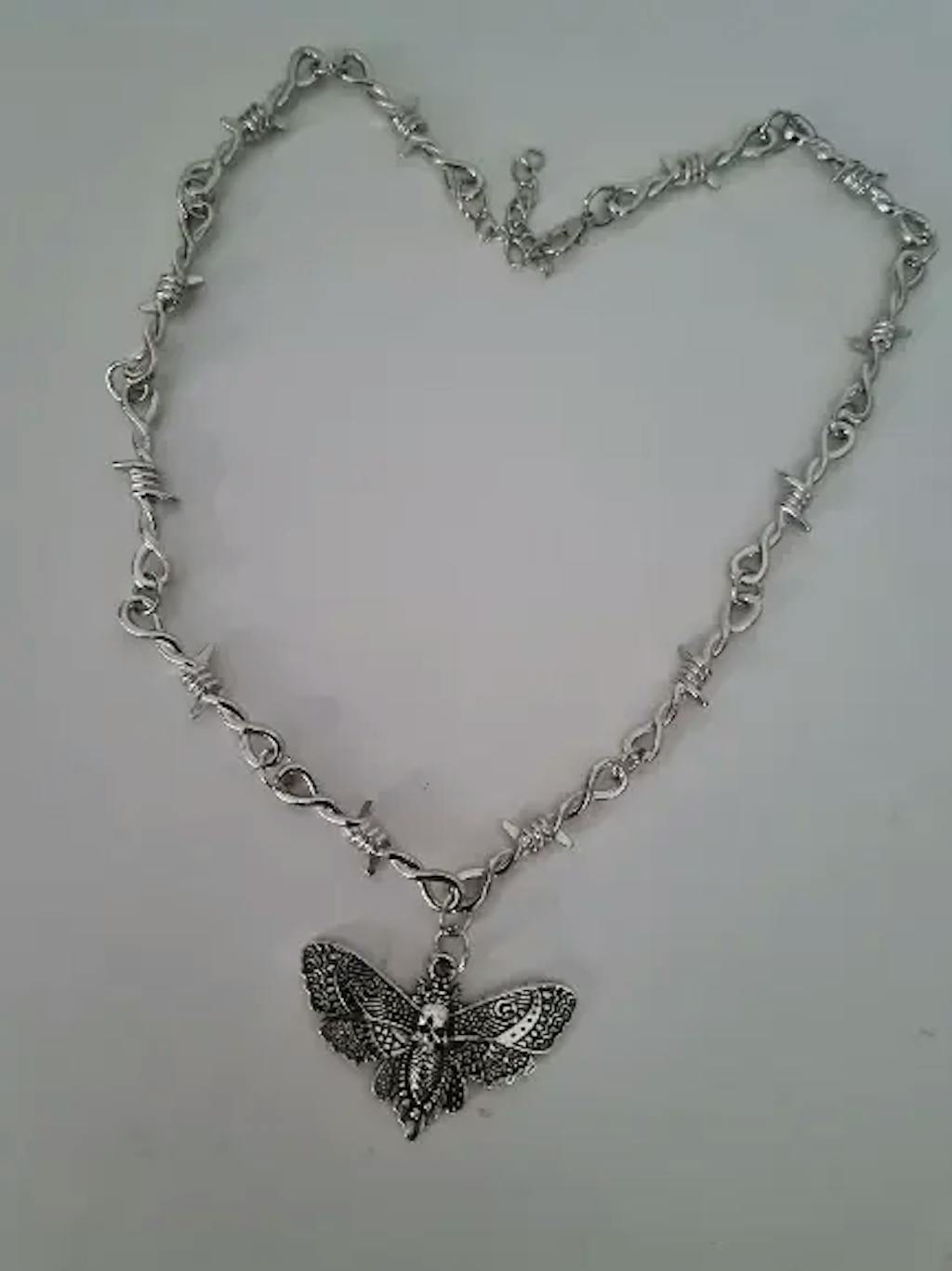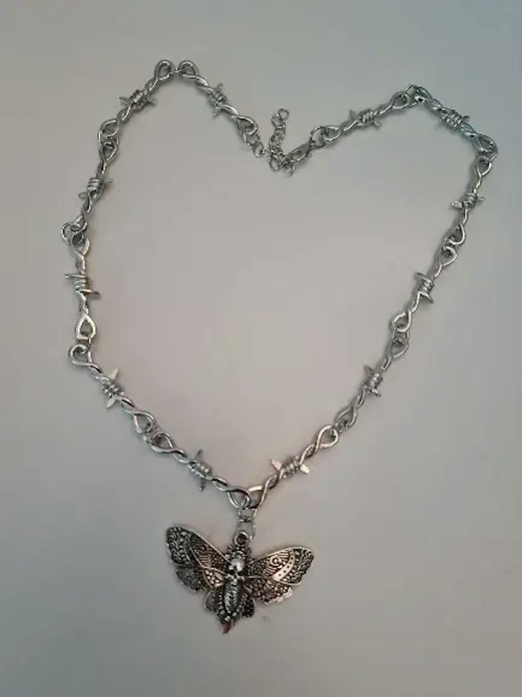 Unleash dark vibes with this Goth Moth Skull Barbed Wire Cross Pendant Choker — a striking fusion of punk, hip hop, and Y2K vampire aesthetics featuring intricate little thorn details for an unforgettable statement.