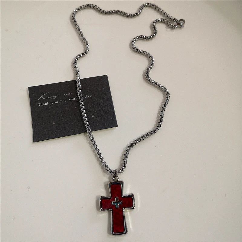 Make a powerful statement with this Gothic Red Heart Thorns Cross Necklace — a trendy blend of hip-hop, grunge, punk, and Y2K styles featuring bold chains, thorn details, and iconic symbolism for both women and men.