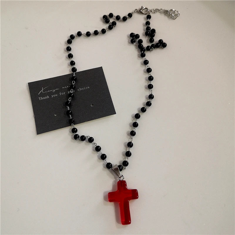 Gothic Red Heart Thorns Cross Chains Necklace – Hip-Hop Grunge Punk Y2K Jewelry for Women & Men