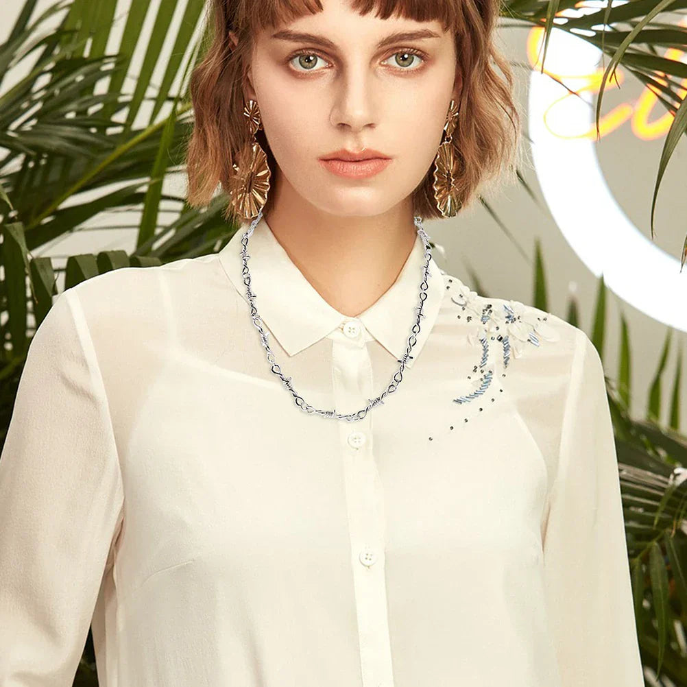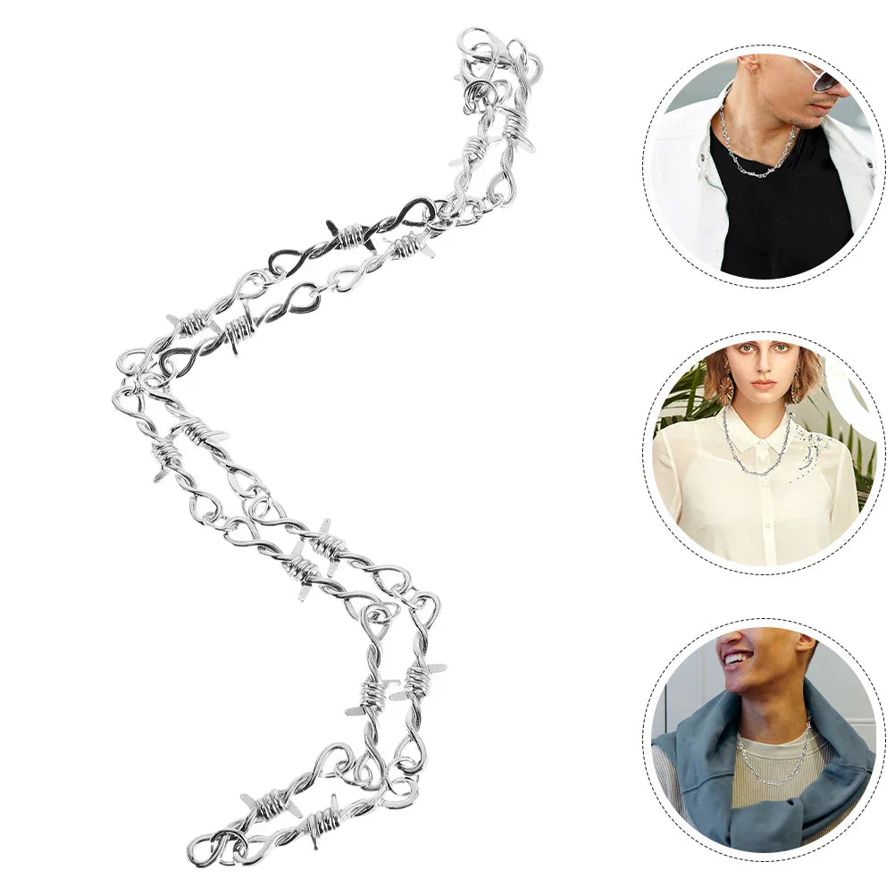 Add an edgy, rebellious touch to your look with this Thorn Necklace — a chunky gothic choker crafted from durable zinc alloy, designed to mimic sharp barbed wire for bold statement style.