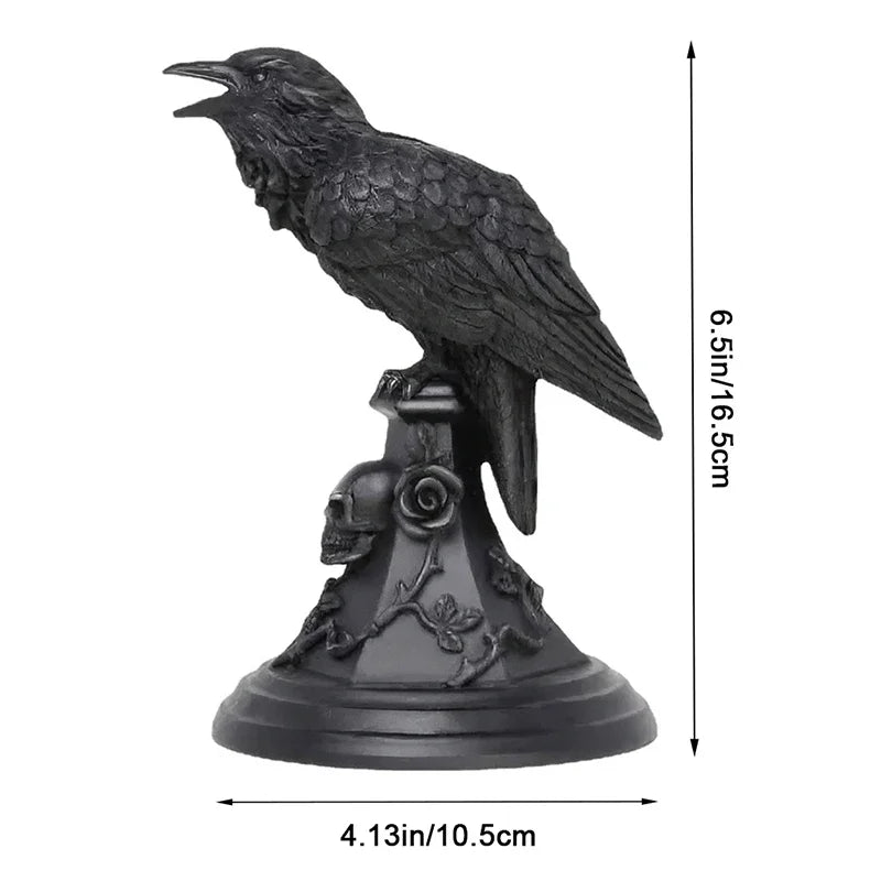 Unique design featuring a crow perched on a gothic-style owl or pedestal