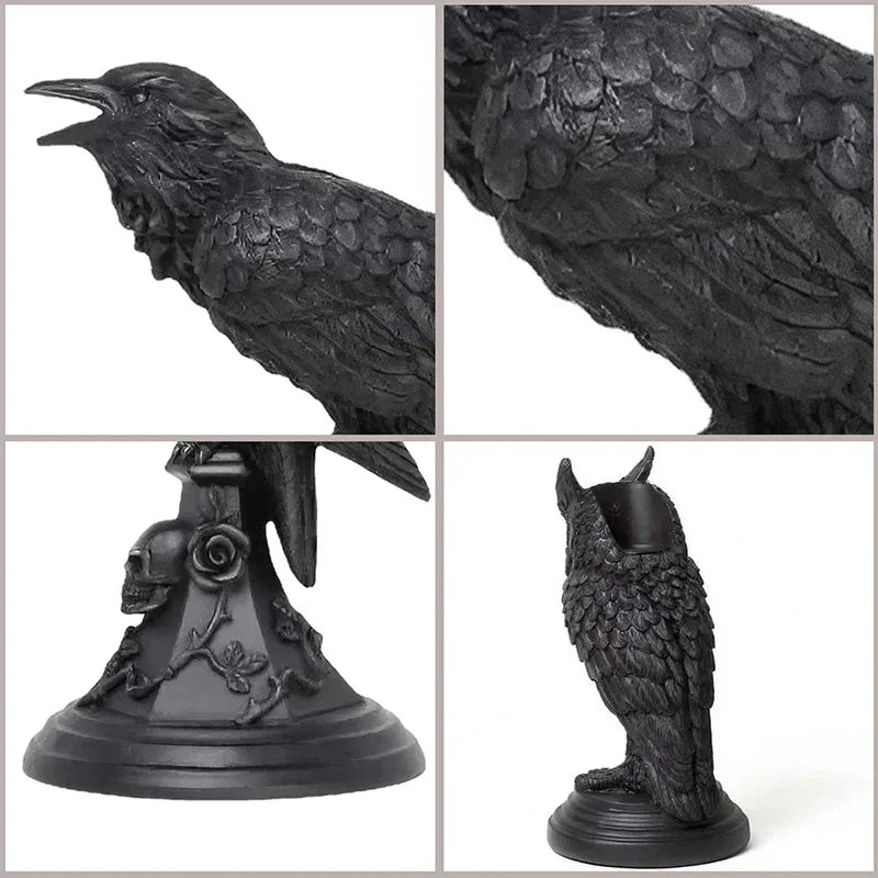 Bring a mysterious and whimsical vibe to your space with this Gothic Crow Candle Holder — a retro black owl candlestick sculpture perfect for Halloween or year-round gothic home décor.
